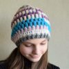 Kirju müts on heegeldatud alpakavillasegustest lõngadest.